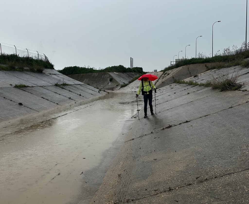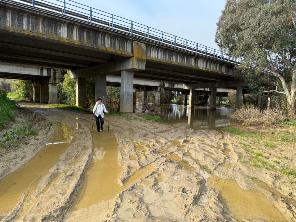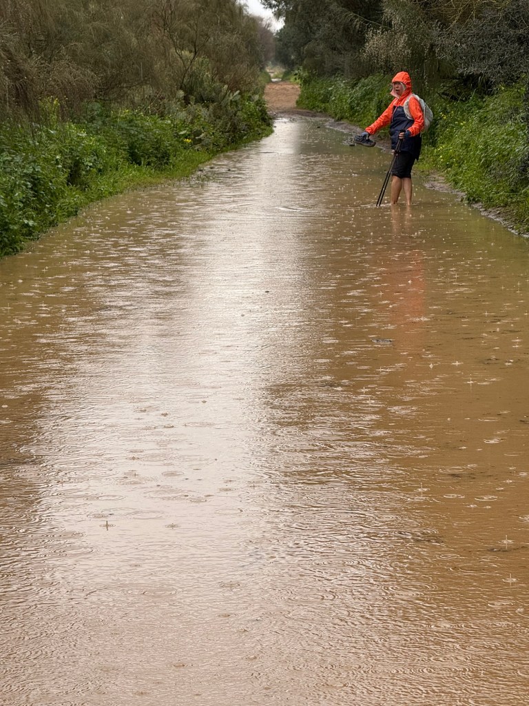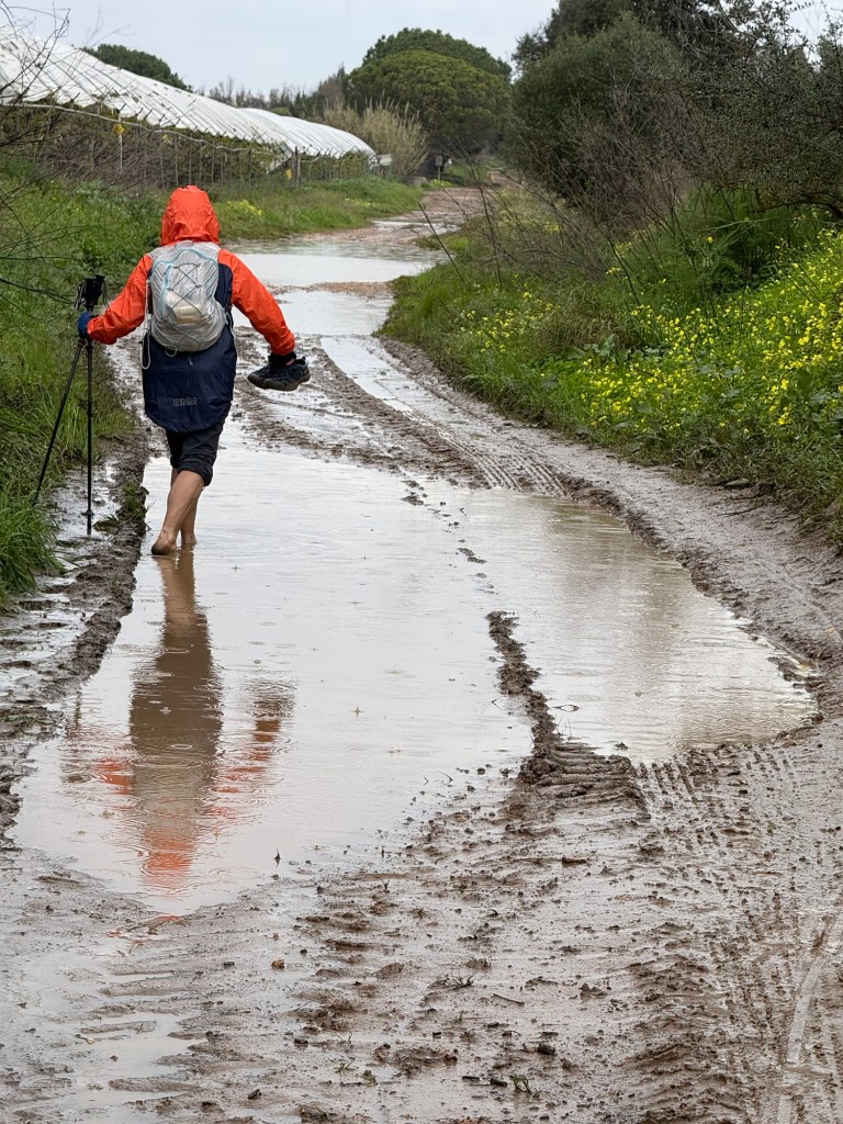 Zusammenfassen könnte ich die letzte Woche mit den beiden Wörtern Schlamm und Wasser. Spanien ist nicht gut vorbereitet für grössere Regenfälle. Sobald wir die Strasse verlassen, stecken wir im Schlamm fest. Guang hat sich vorausschauender Weise öfters für die Strasse entschieden, während ich immer viel zu optimistisch die Feldwege versucht habe. Es ist einfach nicht vorgesehen, Überland zu laufen, es fehlt ein Fussgängerkonzept zwischen den Ortschaften. Und wenn dann der grosse Regen kommt, gibt es quasi kein Durchkommen mehr. Auch nach ein oder zwei Tagen Sonnenschein bleiben die Wege unpassierbar. Der Wetterbericht meldet für die nächsten zehn Tage Regen. Aber dessen Unzuverlässigkeit war bisher so gross, dass wir den Glauben daran verloren haben.