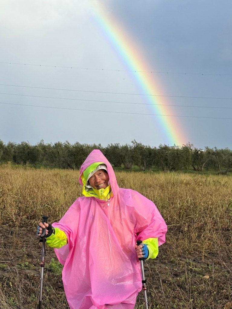 But barely an hour later, we faced another deep, raging river that we couldn’t cross. By chance, a pickup truck drove by (we hadn’t seen anyone else all day). We asked if the driver could take us to the other side. The kind driver agreed, and we hopped onto the back. But when he saw the river, he had to back out—it was far too deep for his vehicle. So, I attempted to cross on foot. The water reached my navel, and the current nearly swept me away. At the last second, I managed to grab a bamboo stalk and pull myself to the other side. But what about Guang? How would she get across? Bravely, she set out. I went back into the water, holding the bamboo with one hand and extending my trekking poles with the other, which Guang used to pull herself across. Sadly, there’s no photo of this moment—you’ll have to use your imagination! By then, we were completely soaked, and with the temperature at 9°C and strong winds, we were freezing. After another 14 km, we reached our accommodation in pouring rain as darkness fell. A hot shower saved us from hypothermia, and we ran out of space to hang all our wet clothes in the room.