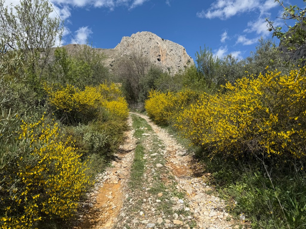 After a brief coastal stretch near Málaga, I veered into the mountains, far from any towns. The path wound through blooming almond trees and pine forests, where I often encountered processionary caterpillars—those that form eerie, snake-like chains to pupate. The longest chain I saw had 56 members! Their silken nests dangled from the trees like ghostly ornaments.