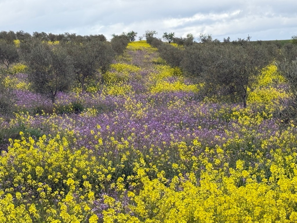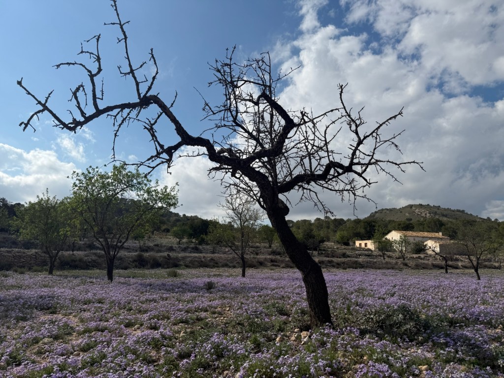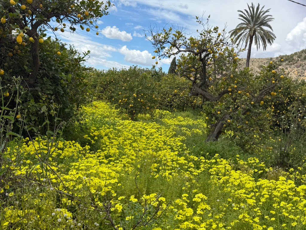 Yesterday, I shifted to coastal paths—a stark contrast to the solitary mountains. Apartment blocks and holiday homes now dominate, though in March, they’re ghost towns awaiting summer. I walked promenades, beaches, and fragrant orange groves (where ripe fruit still hangs alongside blossoms).