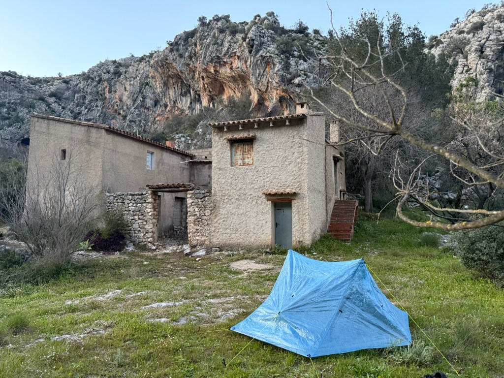 Wild camping rules: pitch the tent at last light, stay remote and hidden, avoid scenic spots that attract others. In Scandinavia, riverside camps let you bathe and wash clothes—but in Spain’s arid karst, my 1.5L water bottle was all I had.
