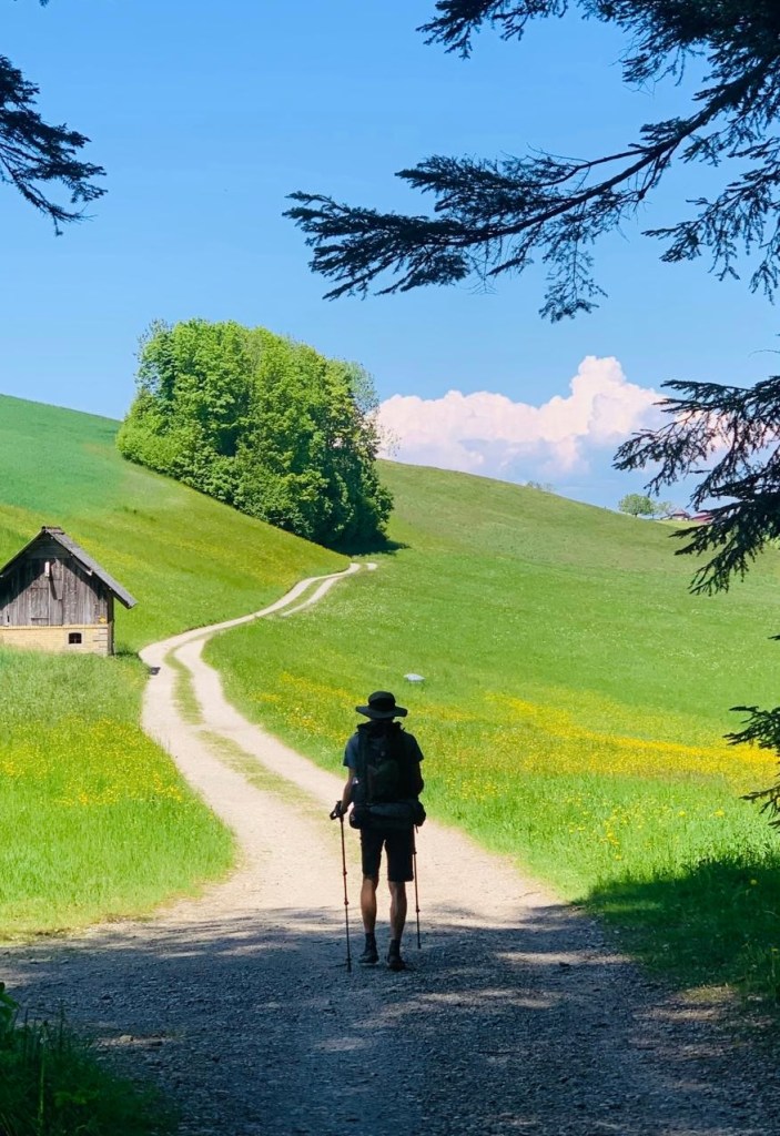 我已经从葡萄牙西南端的圣维森特角(Cabo de São Vicente)走到了苏黎世。每天我行走29到54公里,平均约40公里,没有休息日。然而,我现在在苏黎世的家中休息四天,然后将在2025年5月18日星期日继续前往德国。起初我计划以更悠闲的节奏行走,安排休息日,每天大约30公里,所以我现在已经比计划提前了近一个月。这种赶路其实没有特别的原因,我的每日路线带给我一种“积极压力”,让我没有理由停留任何地方。