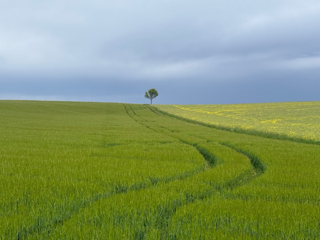 Trotz des wechselhaften Wetters mit vielen kleinen Schauern kam am letzten Tag noch mein Schulfreund Jörn hinzu und beide blieben ihrem Versprechen treu, mich auf meiner der letzten Etappe nach Hause zu begleiten. Ich zeigte den beiden mein Patent: man hält den Regenschirm nicht mehr in der Hand, sondern klemmt ihn unter das Brustband des Rucksacks, so dass man die Hände beim Wandern frei hat. Auf diese Art bewaffnet starteten wir den letzten Tag nach Wiesbaden auf geteerten Radwegen über die offenen Felder von der Rheinhessischen Hochebene herunter in die rheinland-pfälzische Landeshauptstadt Mainz. Am Mittwochabend, dem 28. Mai 2025 erreichten wir die schönste Stadt der Welt: die hessische Landeshauptstadt Wiesbaden. Ich denke, dass die Fotos von Wiesbaden diese Tatsache belegen. Pünktlich zum Abendessen kamen wir bei meinem Vater zu Hause an. Nina und Angela, die meinen Vater pflegen, hatten ein grossartiges Abendessen vorbereitet! Wir hatten einen schönen Willkommensabend mit Klavierspiel und Gesang.