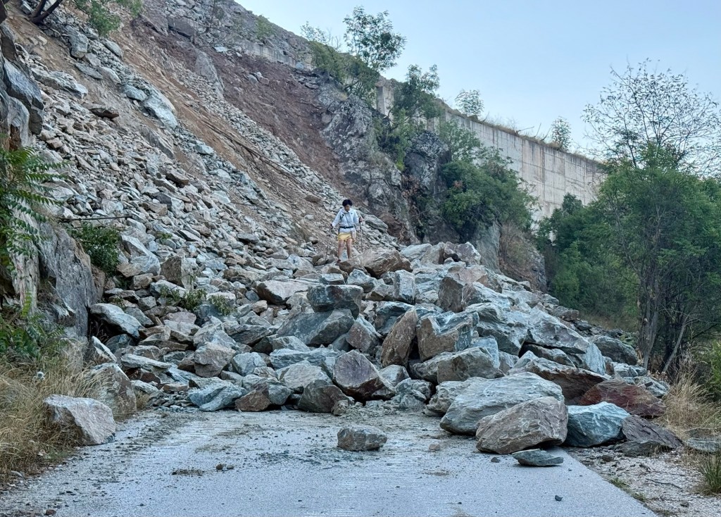 We repeatedly encountered heatwaves with temperatures up to 37°C, and it was not always possible to reach accommodation before the afternoon heat. Then I had a brilliant idea: I bought a small spray bottle to mist Guang and myself. This alleviated the heat, but only when there was some wind. Once, the heat became unbearable. There was practically no shade, and the wind that had blown so nicely the previous day was absent. Without wind, my sprayer could not achieve its full effect, as evaporation is what brings the cooling. Still, I would say the sprayer saved us that day. Every 10 minutes, I misted both of us with a thin film of water. The small sprayer fits well in a pocket and can be used while walking. We also bathed twice in a stream. But it was not enough—Guang suffered from heat exhaustion and was near heatstroke. To make matters worse, the valley was uninhabited. There was no traffic. We had to get through this valley of heat, no matter the cost. Guang grew weaker and slower. We counted the kilometers. And repeatedly, we had to climb in the blazing sun. By 5:00 PM, we finally made it. At our guesthouse, we had dinner and finally enough to drink.
