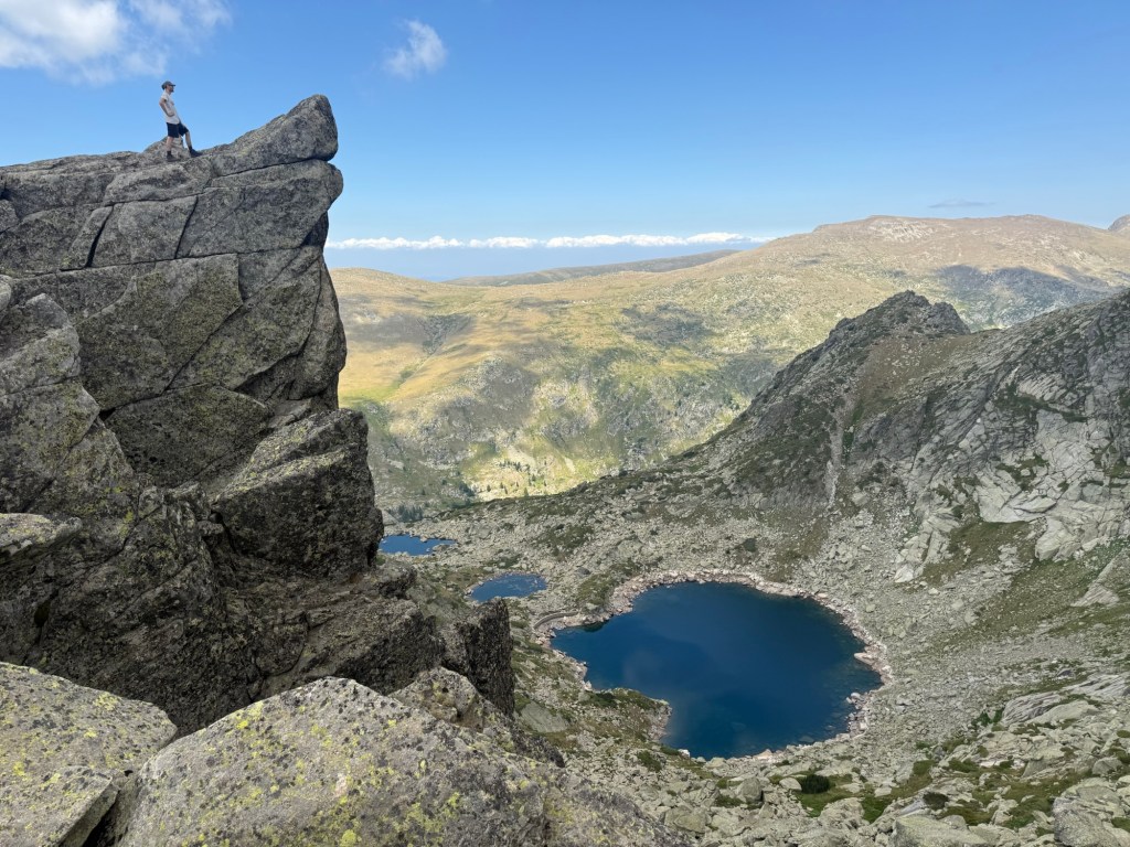 In the southern part of Bulgaria, there is an alpine high mountain range largely unknown to Central Europeans, with peaks nearing 3000m. For three days, I hiked with Guang and my nephew Felix through this beautiful mountain area. We stayed in alpine huts, which also helped us escape the heat. Although we were hiking in high mountains where traveling in a group is advisable, the three of us were sometimes on three different routes. But that is what happens when three strong-willed people travel together. Guang wanted to visit the Rila Monastery and then ascended from the valley to a 2550m-high pass. Felix and I started from our mountain hut at different times. At first light, I set off on a wonderful morning and reached one of the highest peaks in the Balkans, the 2729m Malyovitsa. To avoid misconceptions: it is an unspectacular, flat grassy dome, but it offers a breathtaking view. The descent, however, turned out to be unexpectedly difficult. For hours, I had to struggle through scree fields. To reach the meeting point, I had to follow a route marked by cairns through steep and rocky terrain. Gradually, I realized I would not make it to the agreed meeting point with Guang on time. Fortunately, we occasionally had mobile reception, so we could communicate. In the late afternoon, we all reached our mountain hut one after another.