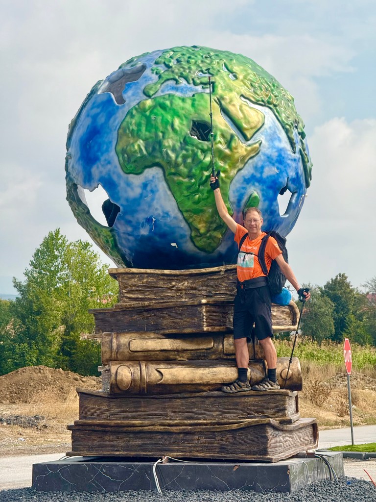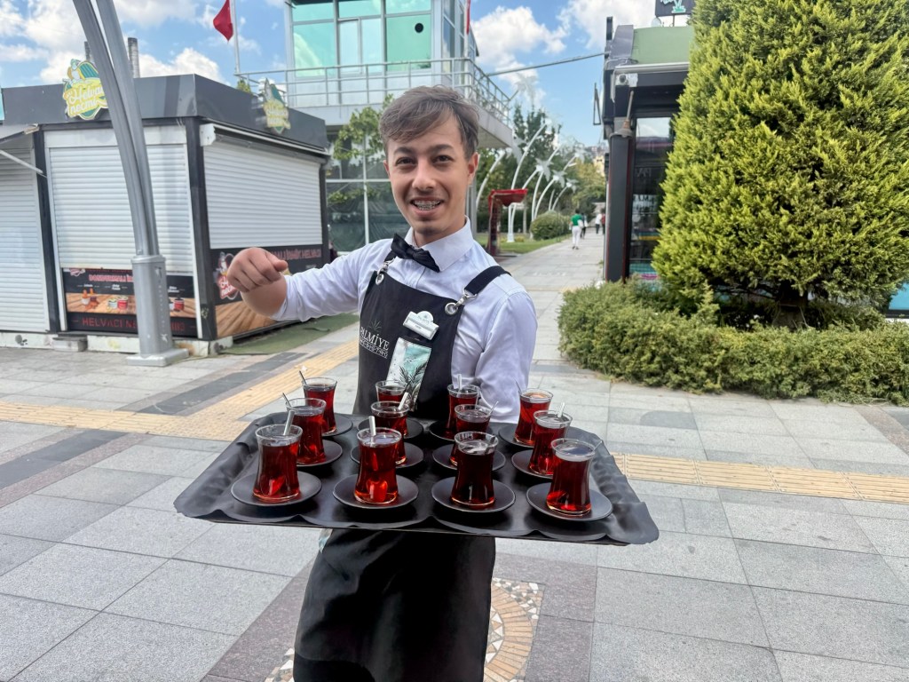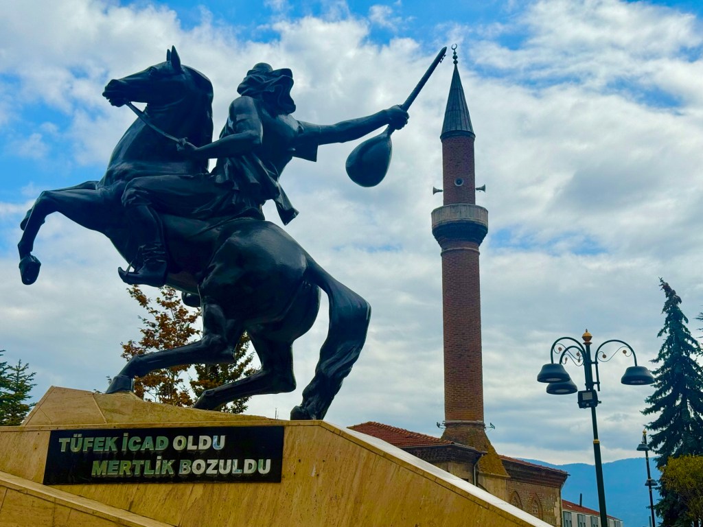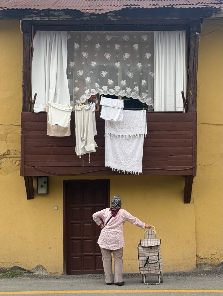 Four days past Istanbul, Guang joined me for two weeks to hike together. For me, it was, as always, a wonderful time because I have a fantastic partner in her, someone I can always communicate well with. Unfortunately, the route we had to cover together often ran alongside a four-lane highway. To avoid one major four-lane road, we once took a detour adding 5 km, which meant we were on small, mostly paved country roads except for the last 3 km. We passed through several small villages. In one of these villages, a man invited us for tea (Çay). We accepted the invitation and were astonished to see a fully set table in his living room. It turned out the man had previously overtaken us in his car and then, with his wife, prepared everything at home to invite us. It was perfect timing for us, as we were hungry and hadn’t brought any lunch. We discovered the family, like everyone else in this village, are Circassians originating from the Caucasian republic of Adygea. They were expelled by the Russians 150 years ago and settled in this area. The father showed us his traditional Caucasian hat and his skills playing the accordion. Throughout the day, my backpack kept getting heavier, as hardly a car passed without stopping to offer us drinks, hazelnuts, or fruit.