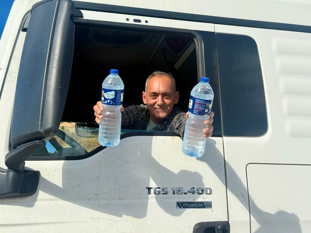 I hardly even mention the many other kind invitations and gifts anymore, like the water bottles from a truck driver yesterday or the melon we received today. But each time, it’s a very pleasant feeling to be treated so kindly.