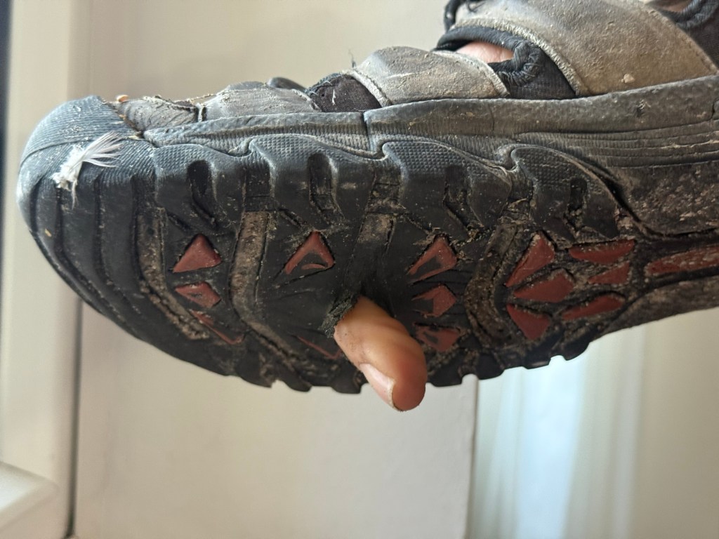 For a few days, the ball of my foot had been hurting while hiking. Until then, I had only cared for my foot by applying cream and tending to the calluses. One morning, it occurred to me to check my shoes for the cause, and I found it: the soles were completely worn through! I could even poke my finger through them. I must have been walking on my socks for the past few days. Luckily, I hadn’t stepped on a large piece of glass! Here in the countryside, I could probably buy some shoes, but it’s questionable whether I could do a long-distance hike with them. The next outdoor store is in Samsun, which was still 100 km away this morning. So what to do? I found a solution in a pharmacy in Havza: I bought two insoles for my shoes. Ah, how pleasant hiking was again afterward!