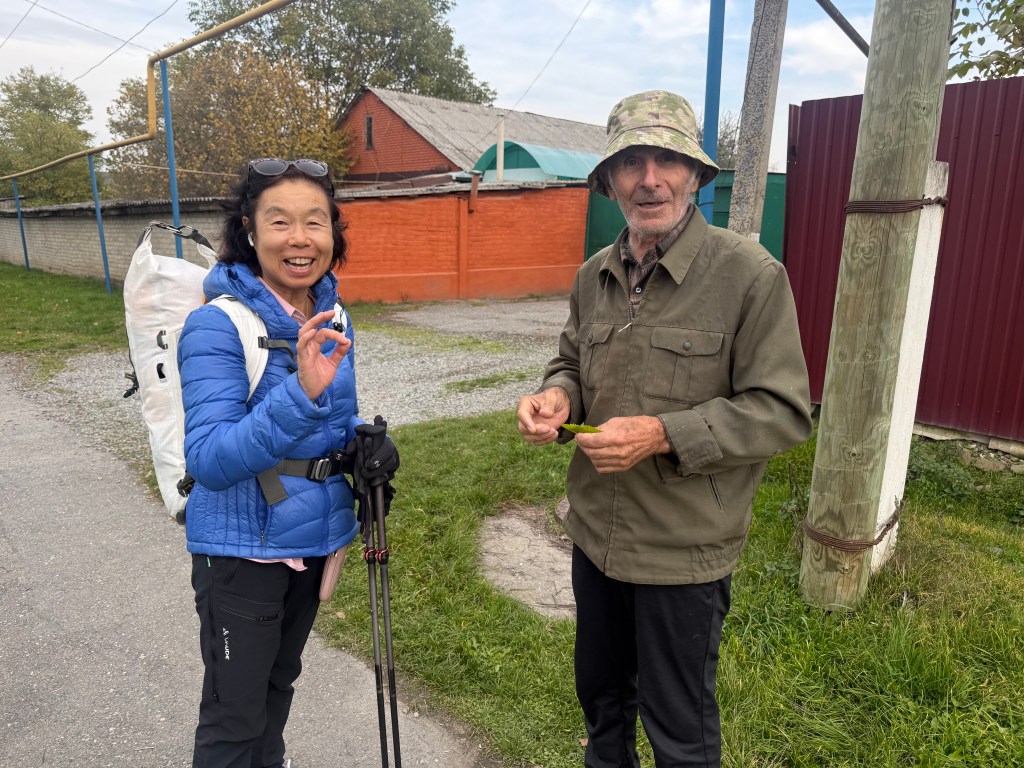 I slipped out of the house before dawn and began my long trek. The terrain is completely flat and partly below sea level, as the Caspian Sea lies about 30 meters below mean sea level. Between the villages are vast open grasslands, where I made good progress. I had swapped backpacks with Guang and, for the first time on this journey, cheated a little with the luggage. With the lighter backpack, I was even able to jog for a while, allowing me to reach the town of Kizlyar, with its 50,000 residents, by 3:00 PM without taking any significant breaks. After my arrival, we strolled together through the vibrant market, where almost everything is available—except suitable shoes for Guang. We ended the evening at the steakhouse located right downstairs in our hotel. And for the first time in a week, alcoholic beverages are available again, so we enjoyed a large bottle of dark beer.