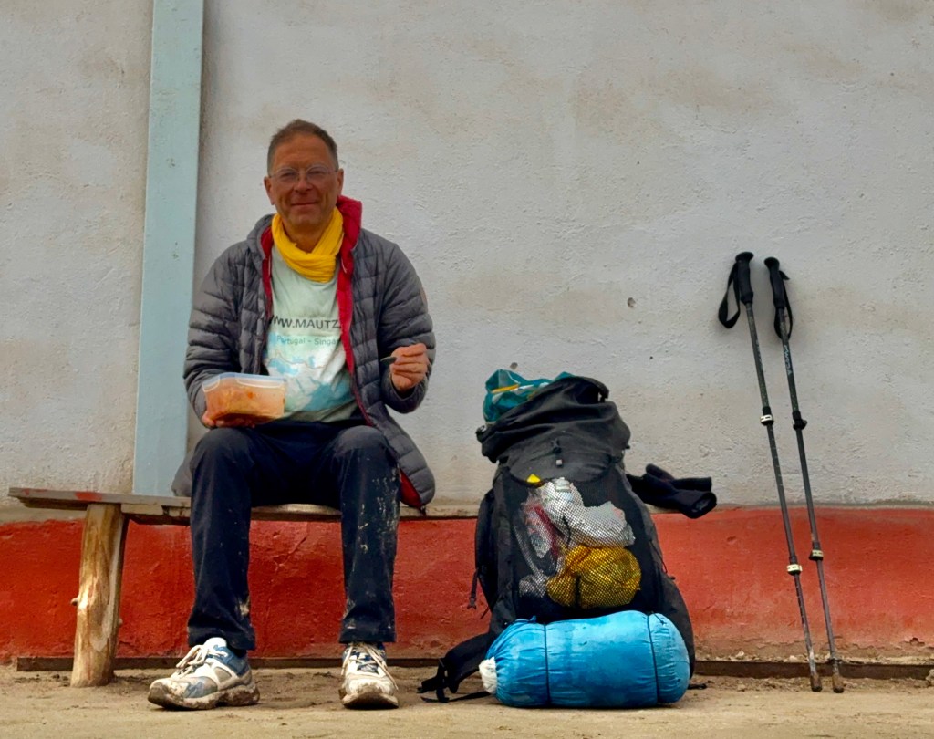 So, from the beginning: last night, Peter got severe diarrhea, and I think he stopped counting after the seventh trip to the toilet. We suspect it was due to the poor hygiene at the memorial ceremony yesterday. In any case, Peter was unable to move more than 100 m from a toilet today. My stomach was fine, but I was still so shaken from yesterday that my sleep suffered.