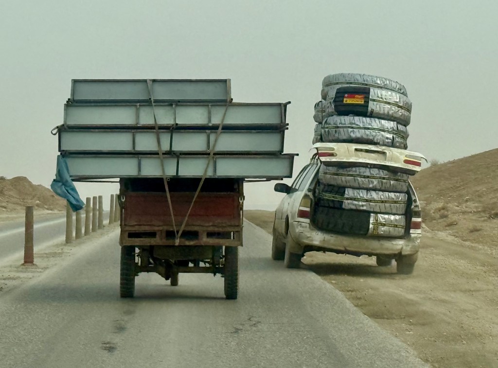 Just before the border town of Hairatan ended and the sand desert began, we stopped at a restaurant. But inside, there was absolute chaos. We must have shaken hands with 20 men. A table was immediately prepared for us, and we got a large mound of rice with vegetables. A woman served us without a headscarf and explained that she had lost her husband 40 days ago and this was his memorial ceremony. In the end, we weren’t allowed to pay, and we even shook her hand!