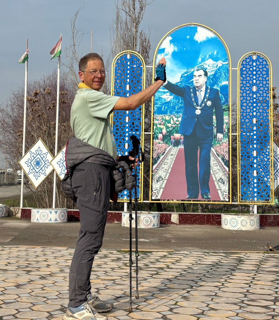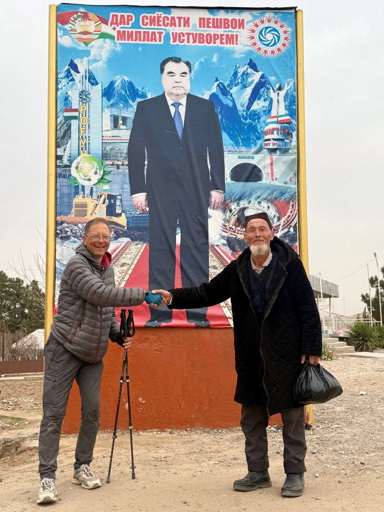 Im Dreiländereck erreichen wir schon m nächsten Tag Tadjikistan, ein kleines bergiges Land mit 10 Millionen Einwohnern. Peter begleitete mich noch ein paar Tage mit dem Fahrrad, bis sein Rückflug nach San Francisco anstand. Nach drei weiteren Tagen habe ich gestern die Hauptstadt Duschanbe erreicht, wo ich zwei Tage Pause mache, um mich für die anstehende Passüberquerung vorzubereiten. Bei einer Scheitelhöhe von 2700 m wird es im Februar sehr viel Schnee geben und ich bin gespannt, ob mir das gelingen wird.
