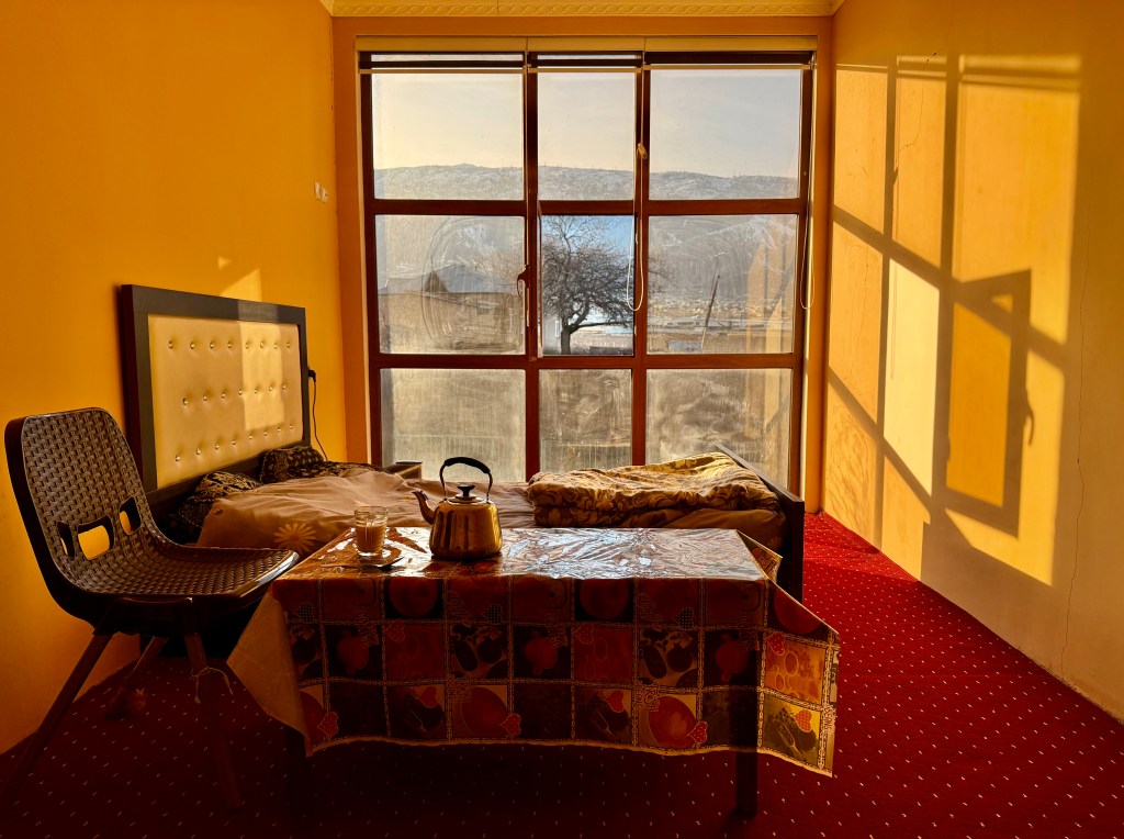 In the three-country triangle, we reached Tajikistan the very next day, a small mountainous country with 10 million inhabitants. Peter accompanied me for a few more days by bike until his return flight to San Francisco was due. After three more days, I reached the capital Dushanbe yesterday, where I’m taking a two-day break to prepare for the upcoming mountain pass crossing. At a summit altitude of 2700 m, there will be a lot of snow in February, and I’m curious if I’ll manage it.